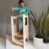 ۲_ با طراحی اصولی و خاصش متناسب با ارگونومی بدن کودکان هر دو پله قابلیت تنظیم ارتفاع داره تا فاصله پله ها استاندارد باشه و گام کودک از گام ایمن خارج نشه.